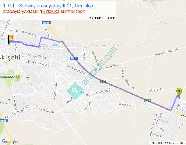 Eğer 1. Cd. Kurtuluş arası ne kadar yakar (benzin/mazot) diyorsanız, kilometrede 3 ₺ yakan bir aracınız var ise 33, km'de 4 ₺ yakan bir aracınız var ise 44, km'de 5 ₺ yakan bir aracınız var ise 55 ile bu yolculuğu tamamlayabilirsiniz.
