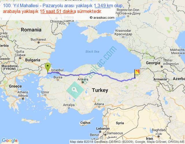 100. Yıl Mahallesi - Pazaryolu arası detaylı bilgi