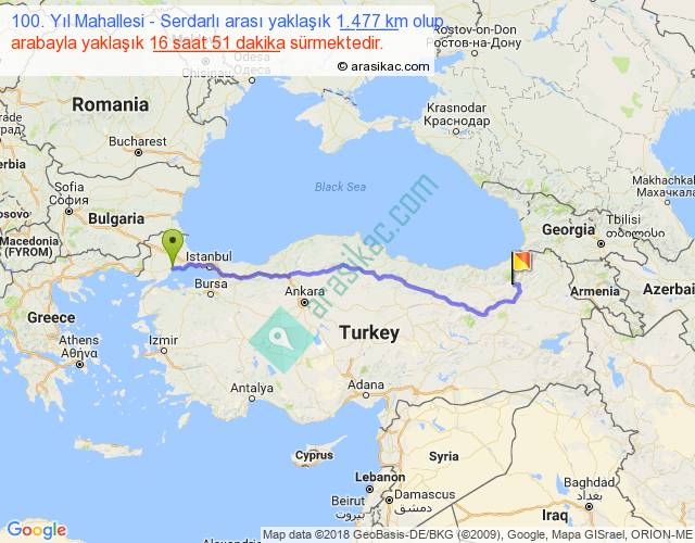 100. Yıl Mahallesi - Serdarlı arası detaylı bilgi