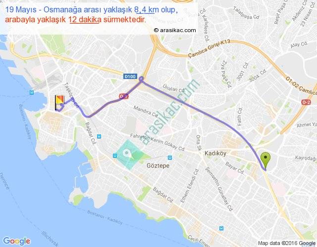 Eğer 19 Mayıs Osmanağa arası ne kadar yakar (benzin/mazot) diyorsanız, kilometrede 3 ₺ yakan bir aracınız var ise 24, km'de 4 ₺ yakan bir aracınız var ise 32, km'de 5 ₺ yakan bir aracınız var ise 40 ile bu yolculuğu tamamlayabilirsiniz.