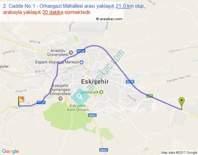 2. Cadde No:1 - Orhangazi Mahallesi arası yaklaşık olarak 90 km/h ile yukarıda belirtilen sürede olup, iki yerin kuş uçuşu uzaklığı (mesafesi) 15'dir. Yolculuk otobüsle 26 dakika sürmektedir.
