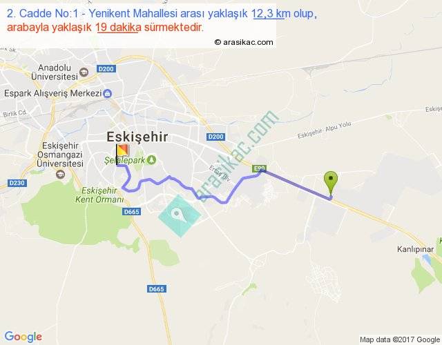 2. Cadde No:1 - Yenikent Mahallesi arası yaklaşık olarak 90 km/h ile yukarıda belirtilen sürede olup, iki yerin kuş uçuşu uzaklığı (mesafesi) 9'dir. Yolculuk otobüsle 24 dakika sürmektedir.