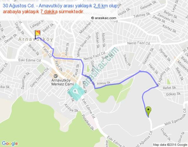 30 Ağustos Cd. - Arnavutköy arası detaylı bilgi