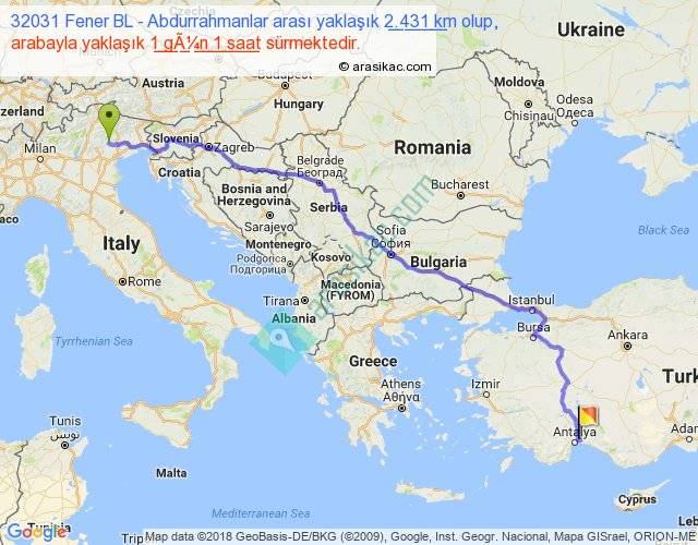 32031 Fener BL - Abdurrahmanlar arası yaklaşık olarak 90 km/h ile yukarıda belirtilen sürede olup, iki yerin kuş uçuşu uzaklığı (mesafesi) 1851'dir. Eğer belirtilen yerler arasında uçak seferi var ise bu süre uçakla 2 saat 50 dakika'ya kadar düşebilir. Yolculuk otobüsle 1 gün 8 saat sürmektedir.