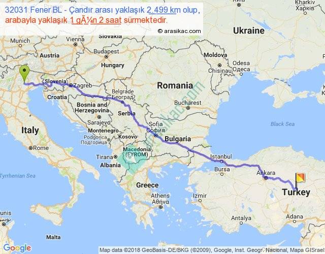 32031 Fener BL - Çandır arası yaklaşık olarak 90 km/h ile yukarıda belirtilen sürede olup, iki yerin kuş uçuşu uzaklığı (mesafesi) 2046'dir. Eğer belirtilen yerler arasında uçak seferi var ise bu süre uçakla 3 saat 08 dakika'ya kadar düşebilir. Yolculuk otobüsle 1 gün 9 saat sürmektedir.