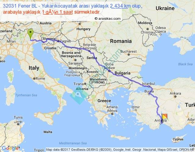 32031 Fener BL - Yukarıkocayatak arası yaklaşık olarak 90 km/h ile yukarıda belirtilen sürede olup, iki yerin kuş uçuşu uzaklığı (mesafesi) 1855'dir. Eğer belirtilen yerler arasında uçak seferi var ise bu süre uçakla 2 saat 51 dakika'ya kadar düşebilir. Yolculuk otobüsle 1 gün 8 saat sürmektedir.