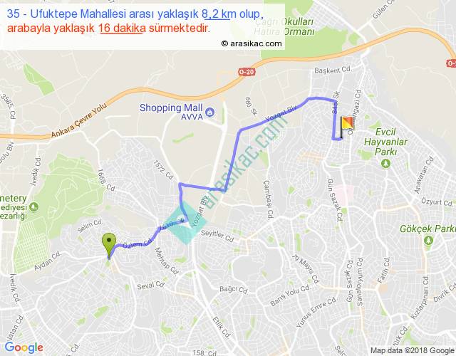 35 - Ufuktepe Mahallesi arası yaklaşık olarak 90 km/h ile yukarıda belirtilen sürede olup, iki yerin kuş uçuşu uzaklığı (mesafesi) 5'dir. Yolculuk otobüsle 20 dakika sürmektedir.