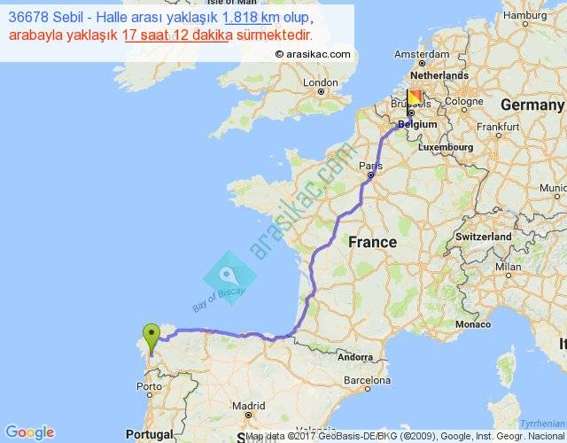 36678 Sebil - Halle arası yaklaşık olarak 90 km/h ile yukarıda belirtilen sürede olup, iki yerin kuş uçuşu uzaklığı (mesafesi) 1317'dir. Eğer belirtilen yerler arasında uçak seferi var ise bu süre uçakla 2 saat 01 dakika'ya kadar düşebilir. Yolculuk otobüsle 22 saat 21 dakika sürmektedir.
