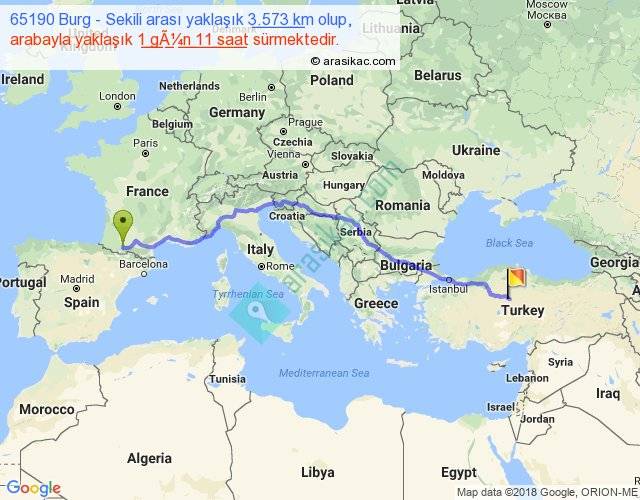 65190 Burg - Sekili arası yaklaşık olarak 90 km/h ile yukarıda belirtilen sürede olup, iki yerin kuş uçuşu uzaklığı (mesafesi) 2817'dir. Eğer belirtilen yerler arasında uçak seferi var ise bu süre uçakla 4 saat 20 dakika'ya kadar düşebilir. Yolculuk otobüsle 1 gün 21 saat sürmektedir.