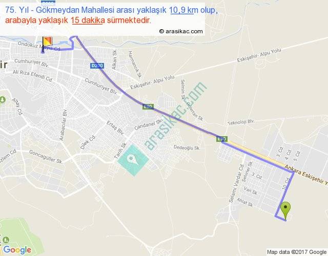 Eğer 75. Yıl Gökmeydan Mahallesi arası ne kadar yakar (benzin/mazot) diyorsanız, kilometrede 3 ₺ yakan bir aracınız var ise 30, km'de 4 ₺ yakan bir aracınız var ise 40, km'de 5 ₺ yakan bir aracınız var ise 50 ile bu yolculuğu tamamlayabilirsiniz.