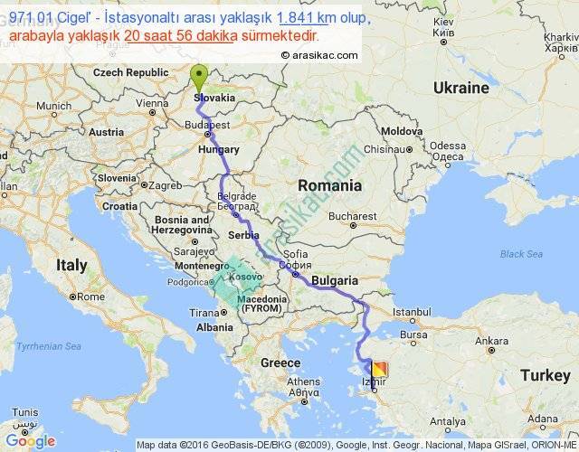 971 01 Cigeľ - İstasyonaltı arası yaklaşık olarak 90 km/h ile yukarıda belirtilen sürede olup, iki yerin kuş uçuşu uzaklığı (mesafesi) 1314'dir. Eğer belirtilen yerler arasında uçak seferi var ise bu süre uçakla 2 saat 01 dakika'ya kadar düşebilir. Yolculuk otobüsle 1 gün 3 saat sürmektedir.