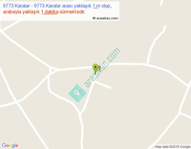 9773 Karalar - 9773 Karalar arası yaklaşık olarak 90 km/h ile yukarıda belirtilen sürede olup, iki yerin kuş uçuşu uzaklığı (mesafesi) 0'dir. Yolculuk otobüsle 1 dakika sürmektedir.
