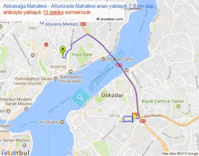 Abbasağa Mahallesi - Altunizade Mahallesi arası yaklaşık olarak 90 km/h ile yukarıda belirtilen sürede olup, iki yerin kuş uçuşu uzaklığı (mesafesi) 4'dir. Yolculuk otobüsle 16 dakika sürmektedir.