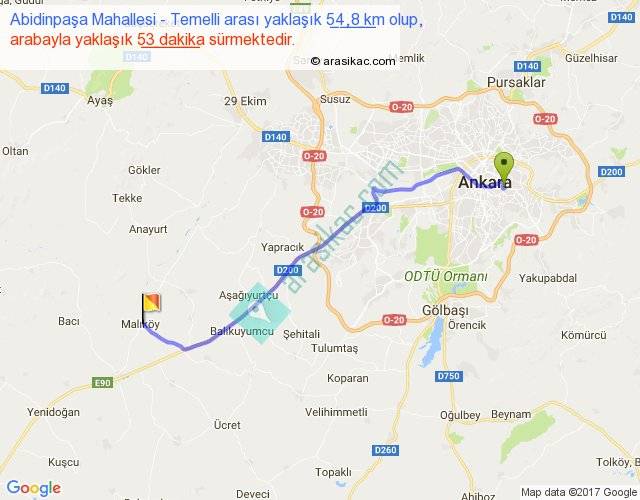Abidinpaşa Mahallesi - Temelli arası yaklaşık olarak 90 km/h ile yukarıda belirtilen sürede olup, iki yerin kuş uçuşu uzaklığı (mesafesi) 45'dir. Yolculuk otobüsle 1 saat 8 dakika sürmektedir.