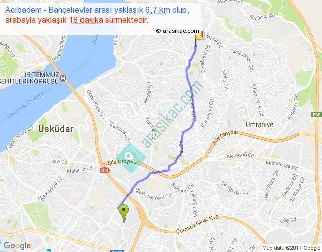 Eğer Acıbadem Bahçelıevler arası ne kadar yakar (benzin/mazot) diyorsanız, kilometrede 3 ₺ yakan bir aracınız var ise 18, km'de 4 ₺ yakan bir aracınız var ise 24, km'de 5 ₺ yakan bir aracınız var ise 30 ile bu yolculuğu tamamlayabilirsiniz.