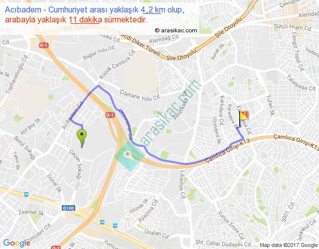 Eğer Acıbadem Cumhuriyet arası ne kadar yakar (benzin/mazot) diyorsanız, kilometrede 3 ₺ yakan bir aracınız var ise 12, km'de 4 ₺ yakan bir aracınız var ise 16, km'de 5 ₺ yakan bir aracınız var ise 20 ile bu yolculuğu tamamlayabilirsiniz.