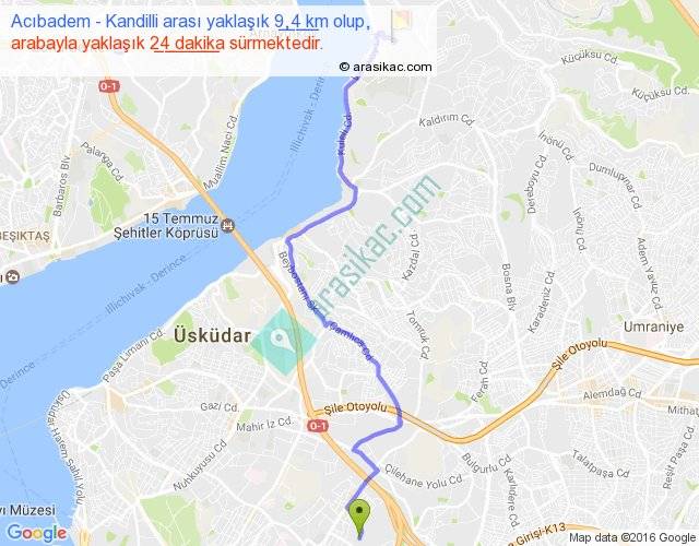 Eğer Acıbadem Kandilli arası ne kadar yakar (benzin/mazot) diyorsanız, kilometrede 3 ₺ yakan bir aracınız var ise 27, km'de 4 ₺ yakan bir aracınız var ise 36, km'de 5 ₺ yakan bir aracınız var ise 45 ile bu yolculuğu tamamlayabilirsiniz.