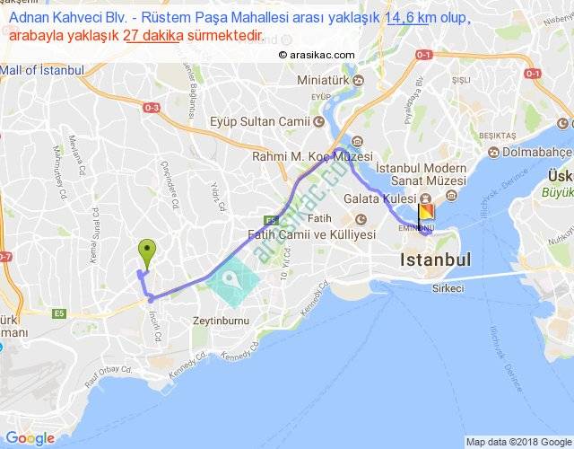 Adnan Kahveci Blv. - Rüstem Paşa Mahallesi arası detaylı bilgi