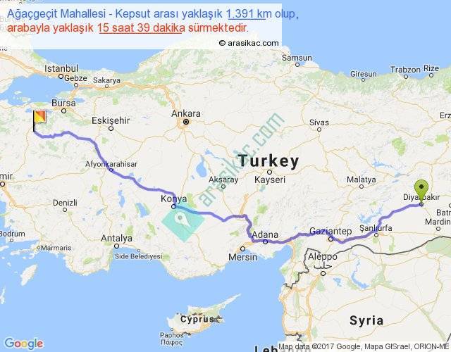 Ağaçgeçit Mahallesi - Kepsut arası yaklaşık olarak 90 km/h ile yukarıda belirtilen sürede olup, iki yerin kuş uçuşu uzaklığı (mesafesi) 1056'dir. Eğer belirtilen yerler arasında uçak seferi var ise bu süre uçakla 1 saat 37 dakika'ya kadar düşebilir. Yolculuk otobüsle 20 saat 20 dakika sürmektedir.