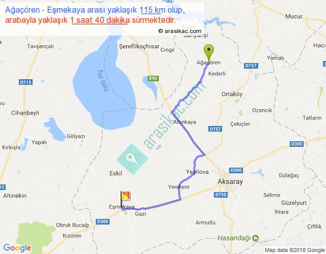 Eğer Ağaçören Eşmekaya arası ne kadar yakar (benzin/mazot) diyorsanız, kilometrede 3 ₺ yakan bir aracınız var ise 345, km'de 4 ₺ yakan bir aracınız var ise 460, km'de 5 ₺ yakan bir aracınız var ise 575 ile bu yolculuğu tamamlayabilirsiniz.