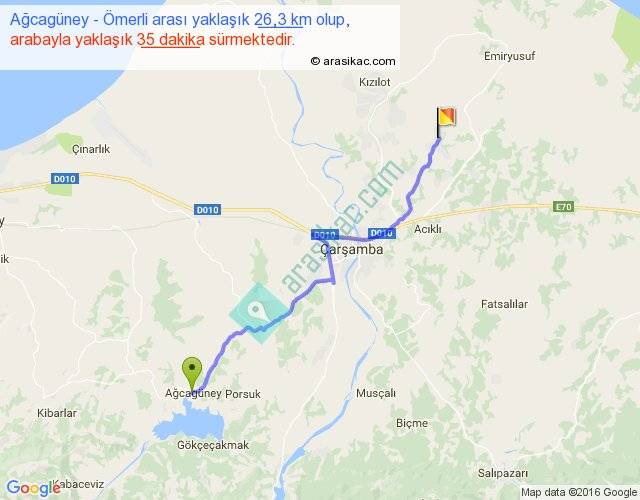 Ağcagüney - Ömerli arası yaklaşık olarak 90 km/h ile yukarıda belirtilen sürede olup, iki yerin kuş uçuşu uzaklığı (mesafesi) 20'dir. Yolculuk otobüsle 45 dakika sürmektedir.
