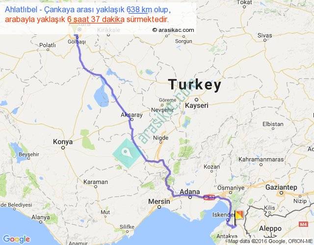 Ahlatlıbel - Çankaya arası yaklaşık olarak 90 km/h ile yukarıda belirtilen sürede olup, iki yerin kuş uçuşu uzaklığı (mesafesi) 486'dir. Eğer belirtilen yerler arasında uçak seferi var ise bu süre uçakla 44 dakika'ya kadar düşebilir. Yolculuk otobüsle 8 saat 36 dakika sürmektedir.