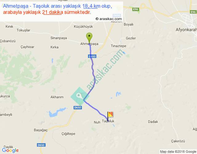 Ahmetpaşa - Taşoluk arası yaklaşık olarak 90 km/h ile yukarıda belirtilen sürede olup, iki yerin kuş uçuşu uzaklığı (mesafesi) 15'dir. Yolculuk otobüsle 27 dakika sürmektedir.