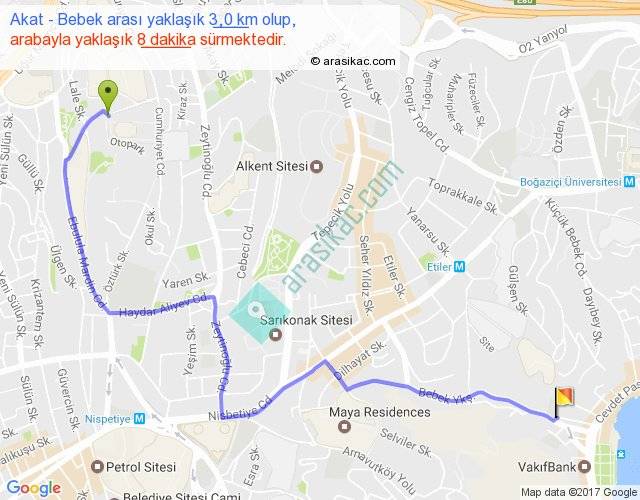 Eğer Akat Bebek arası ne kadar yakar (benzin/mazot) diyorsanız, kilometrede 3 ₺ yakan bir aracınız var ise 9, km'de 4 ₺ yakan bir aracınız var ise 12, km'de 5 ₺ yakan bir aracınız var ise 15 ile bu yolculuğu tamamlayabilirsiniz.