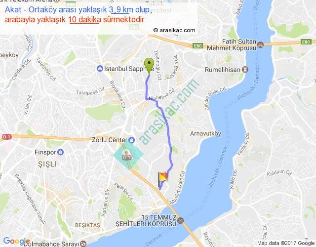Akat - Ortaköy arası yaklaşık olarak 90 km/h ile yukarıda belirtilen sürede olup, iki yerin kuş uçuşu uzaklığı (mesafesi) 3'dir. Yolculuk otobüsle 13 dakika sürmektedir.