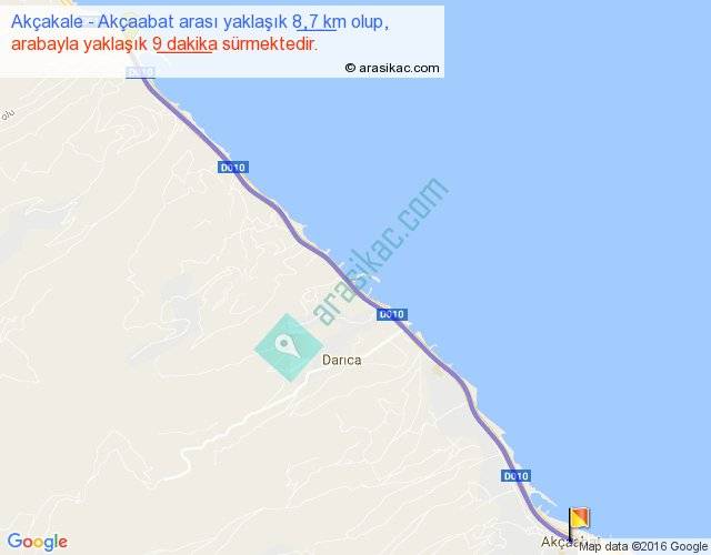Akçakale - Akçaabat arası yaklaşık olarak 90 km/h ile yukarıda belirtilen sürede olup, iki yerin kuş uçuşu uzaklığı (mesafesi) 8'dir. Yolculuk otobüsle 11 dakika sürmektedir.