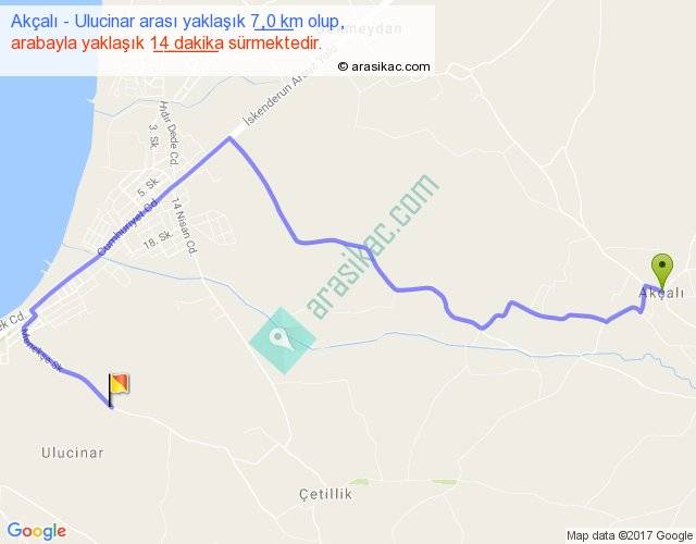Akçalı - Ulucinar arası yaklaşık olarak 90 km/h ile yukarıda belirtilen sürede olup, iki yerin kuş uçuşu uzaklığı (mesafesi) 4'dir. Yolculuk otobüsle 18 dakika sürmektedir.