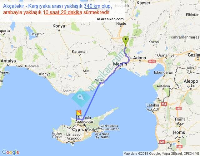 Akçatekir - Karşıyaka arası yaklaşık olarak 90 km/h ile yukarıda belirtilen sürede olup, iki yerin kuş uçuşu uzaklığı (mesafesi) 274'dir. Eğer belirtilen yerler arasında uçak seferi var ise bu süre uçakla 25 dakika'ya kadar düşebilir. Yolculuk otobüsle 13 saat 37 dakika sürmektedir.