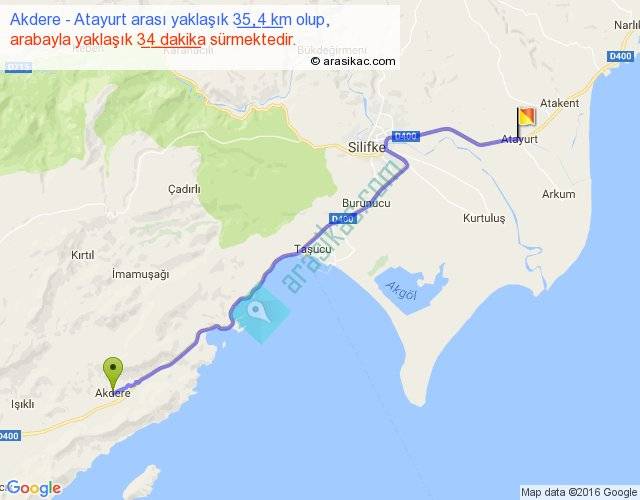 Akdere - Atayurt arası yaklaşık olarak 90 km/h ile yukarıda belirtilen sürede olup, iki yerin kuş uçuşu uzaklığı (mesafesi) 29'dir. Yolculuk otobüsle 44 dakika sürmektedir.