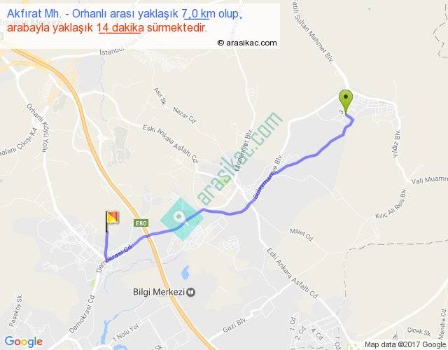 Akfırat Mh. - Orhanlı arası detaylı bilgi