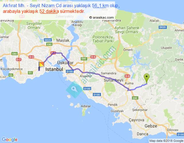 Eğer Akfırat Mh. Seyit Nizam Cd arası ne kadar yakar (benzin/mazot) diyorsanız, kilometrede 3 ₺ yakan bir aracınız var ise 168, km'de 4 ₺ yakan bir aracınız var ise 224, km'de 5 ₺ yakan bir aracınız var ise 280 ile bu yolculuğu tamamlayabilirsiniz.