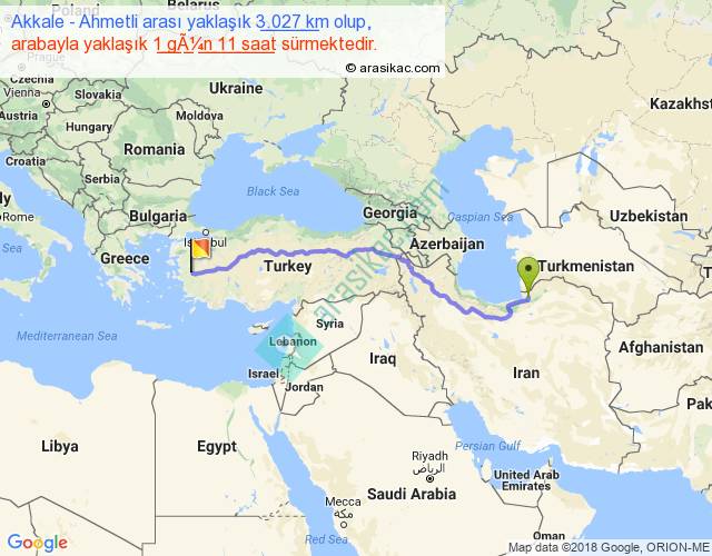 Akkale - Ahmetli arası yaklaşık olarak 90 km/h ile yukarıda belirtilen sürede olup, iki yerin kuş uçuşu uzaklığı (mesafesi) 2315'dir. Eğer belirtilen yerler arasında uçak seferi var ise bu süre uçakla 3 saat 33 dakika'ya kadar düşebilir. Yolculuk otobüsle 1 gün 21 saat sürmektedir.