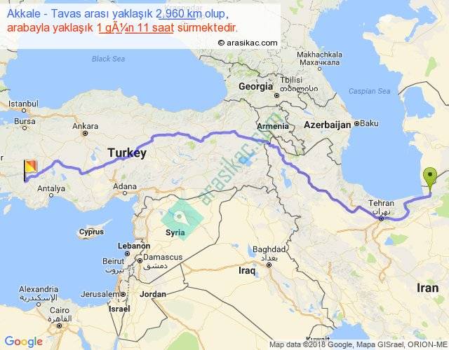 Akkale - Tavas arası yaklaşık olarak 90 km/h ile yukarıda belirtilen sürede olup, iki yerin kuş uçuşu uzaklığı (mesafesi) 2226'dir. Eğer belirtilen yerler arasında uçak seferi var ise bu süre uçakla 3 saat 25 dakika'ya kadar düşebilir. Yolculuk otobüsle 1 gün 21 saat sürmektedir.