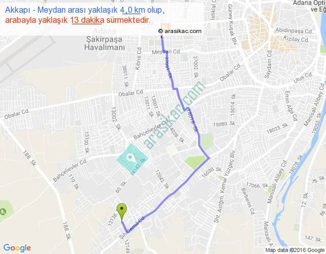 Akkapı - Meydan arası yaklaşık olarak 90 km/h ile yukarıda belirtilen sürede olup, iki yerin kuş uçuşu uzaklığı (mesafesi) 3'dir. Yolculuk otobüsle 16 dakika sürmektedir.