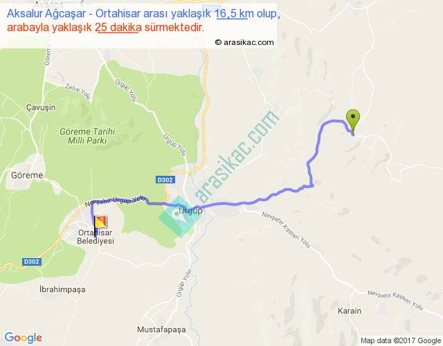 Aksalur Ağcaşar - Ortahisar arası yaklaşık olarak 90 km/h ile yukarıda belirtilen sürede olup, iki yerin kuş uçuşu uzaklığı (mesafesi) 12'dir. Yolculuk otobüsle 32 dakika sürmektedir.