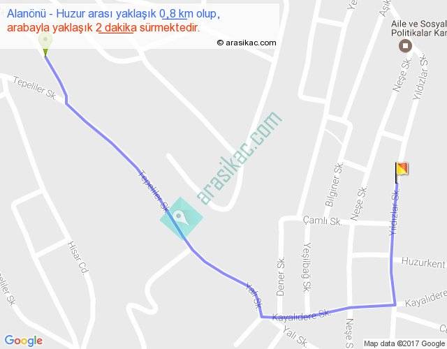 Eğer Alanönü Huzur arası ne kadar yakar (benzin/mazot) diyorsanız, kilometrede 3 ₺ yakan bir aracınız var ise 0, km'de 4 ₺ yakan bir aracınız var ise 0, km'de 5 ₺ yakan bir aracınız var ise 0 ile bu yolculuğu tamamlayabilirsiniz.