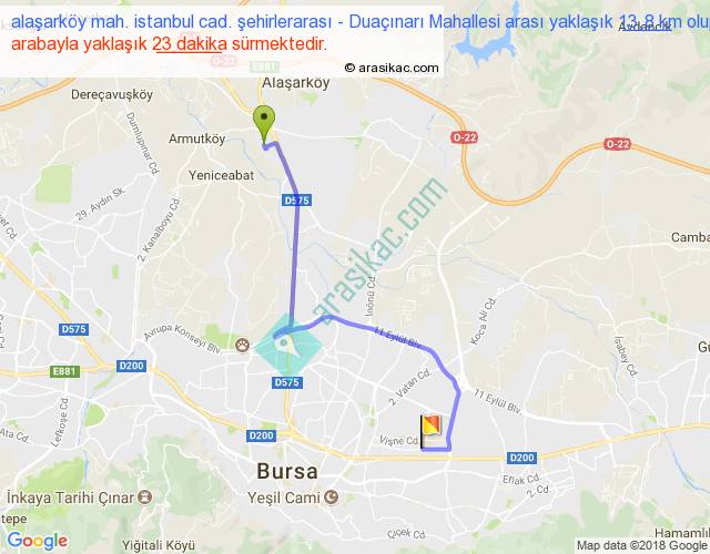 alaşarköy mah. istanbul cad. şehirlerarası - Duaçınarı Mahallesi arası detaylı bilgi
