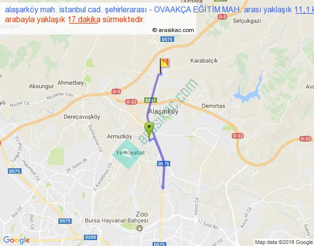 alaşarköy mah. istanbul cad. şehirlerarası - OVAAKÇA EĞİTİM MAH. arası detaylı bilgi