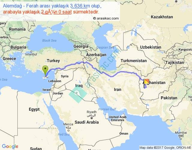 Alemdağ - Ferah arası yaklaşık olarak 90 km/h ile yukarıda belirtilen sürede olup, iki yerin kuş uçuşu uzaklığı (mesafesi) 2669'dir. Eğer belirtilen yerler arasında uçak seferi var ise bu süre uçakla 4 saat 06 dakika'ya kadar düşebilir. Yolculuk otobüsle 2 gün 14 saat sürmektedir.