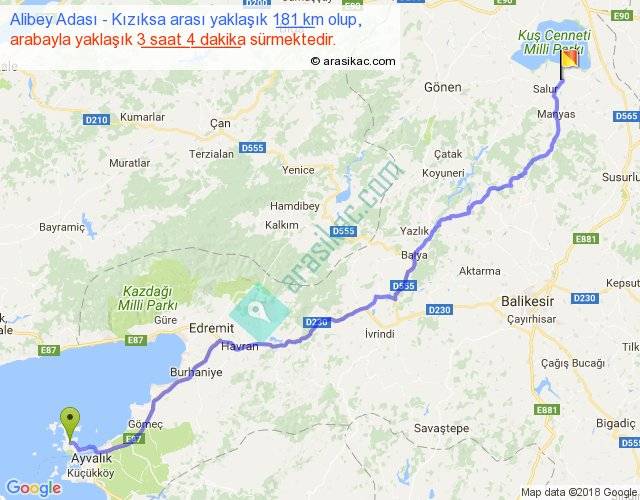 Eğer Alibey Adası Kızıksa arası ne kadar yakar (benzin/mazot) diyorsanız, kilometrede 3 ₺ yakan bir aracınız var ise 543, km'de 4 ₺ yakan bir aracınız var ise 724, km'de 5 ₺ yakan bir aracınız var ise 905 ile bu yolculuğu tamamlayabilirsiniz.