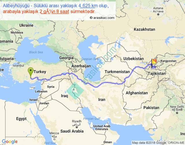 Alibeyhüyüğü - Sülüklü arası yaklaşık olarak 90 km/h ile yukarıda belirtilen sürede olup, iki yerin kuş uçuşu uzaklığı (mesafesi) 3171'dir. Eğer belirtilen yerler arasında uçak seferi var ise bu süre uçakla 4 saat 52 dakika'ya kadar düşebilir. Yolculuk otobüsle 3 gün 0 saat sürmektedir.