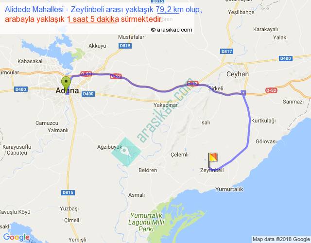 Alidede Mahallesi - Zeytinbeli arası yaklaşık olarak 90 km/h ile yukarıda belirtilen sürede olup, iki yerin kuş uçuşu uzaklığı (mesafesi) 40'dir. Yolculuk otobüsle 1 saat 24 dakika sürmektedir.