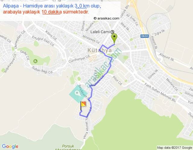 Alipaşa - Hamidiye arası yaklaşık olarak 90 km/h ile yukarıda belirtilen sürede olup, iki yerin kuş uçuşu uzaklığı (mesafesi) 2'dir. Yolculuk otobüsle 13 dakika sürmektedir.
