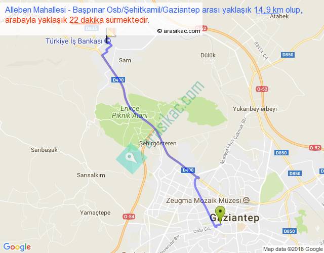 Alleben Mahallesi - Başpınar Osb Şehitkamil Gaziantep arası yaklaşık olarak 90 km/h ile yukarıda belirtilen sürede olup, iki yerin kuş uçuşu uzaklığı (mesafesi) 13'dir. Yolculuk otobüsle 28 dakika sürmektedir.
