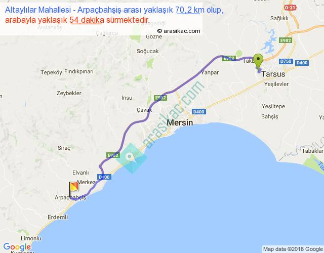 Altaylılar Mahallesi - Arpaçbahşiş arası yaklaşık olarak 90 km/h ile yukarıda belirtilen sürede olup, iki yerin kuş uçuşu uzaklığı (mesafesi) 54'dir. Yolculuk otobüsle 1 saat 10 dakika sürmektedir.