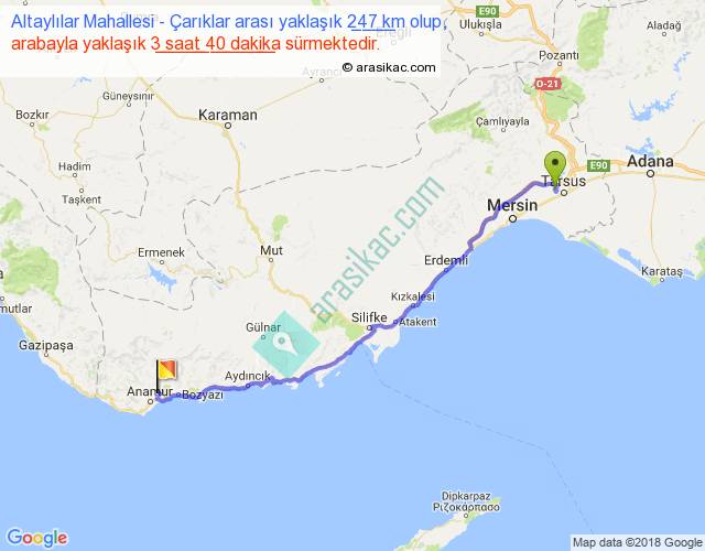 Altaylılar Mahallesi - Çarıklar arası yaklaşık olarak 90 km/h ile yukarıda belirtilen sürede olup, iki yerin kuş uçuşu uzaklığı (mesafesi) 197'dir. Yolculuk otobüsle 4 saat 46 dakika sürmektedir.